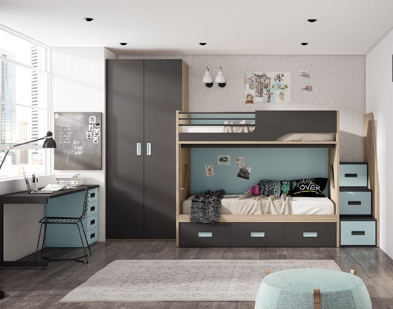 Creamos cuartos únicos para el descanso con los colores más en tendencia y los detalles más innovadores del mercado del mueble. Te ofrecemos un amplio catálogo de opciones para aprovechar hasta el último rincón. Además, puedes equipar cada cama juvenil con accesorios, acabados y detalles de todo tipo. Desde iluminación led, lámparas para leer flexibles, cajones y mucho más.