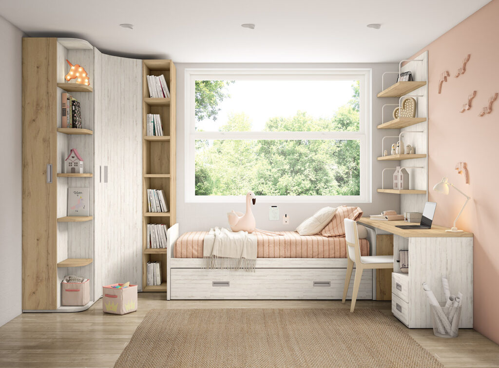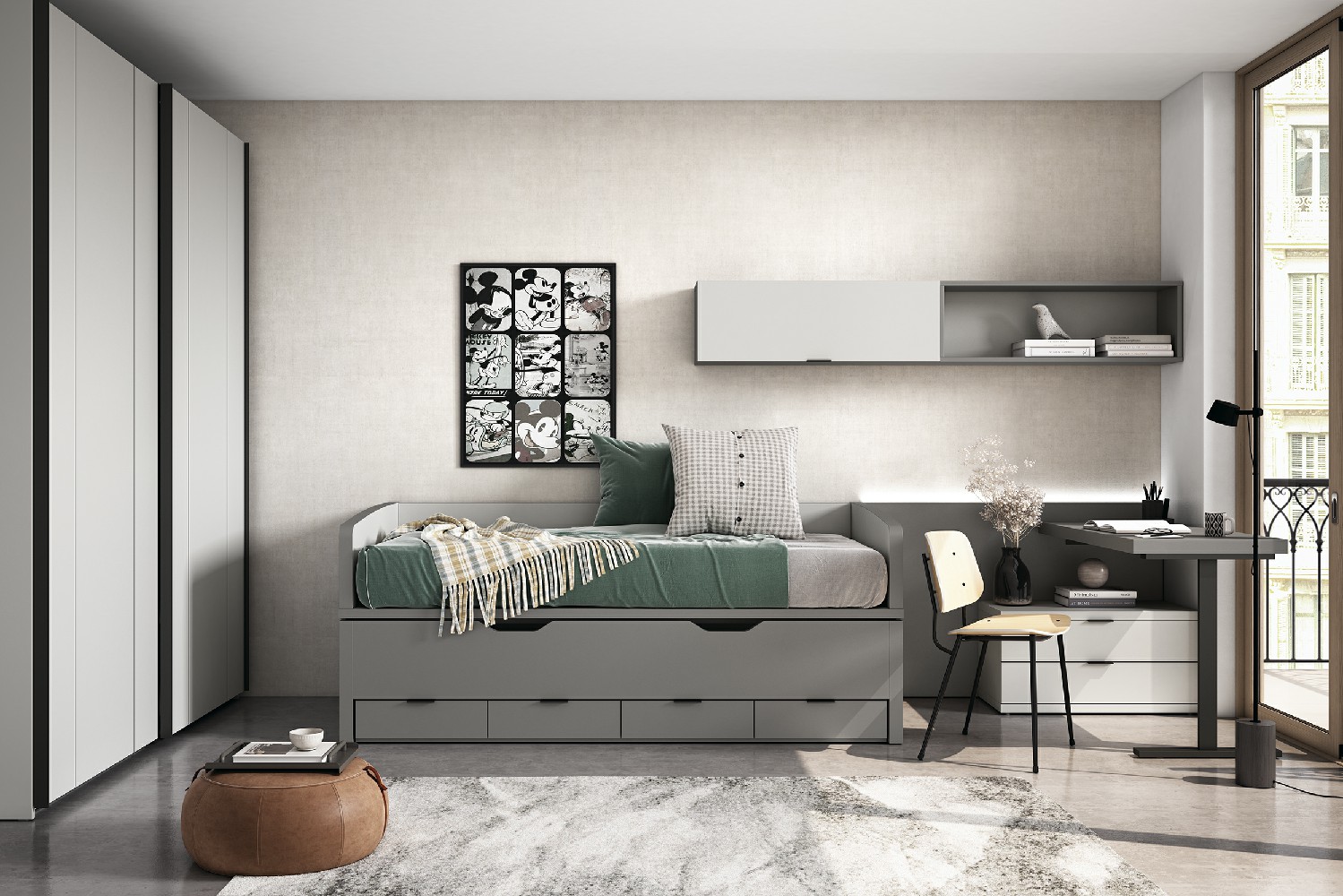 Las camas compactas son la solución ideal para habitaciones juveniles e infantiles, combinando estilo, funcionalidad y aprovechamiento del espacio. Estos muebles modernos integran cama principal, cama auxiliar y almacenamiento, como cajones o estanterías, en un solo bloque, manteniendo la habitación ordenada y despejada. Perfectas para habitaciones pequeñas o compartidas, las camas compactas permiten optimizar cada rincón sin renunciar a la comodidad ni al diseño. Descubre nuestras opciones de camas compactas juveniles e infantiles, pensadas para adaptarse a cada necesidad y ofrecer versatilidad, practicidad y un toque moderno que convierte cualquier dormitorio en un espacio organizado y acogedor.